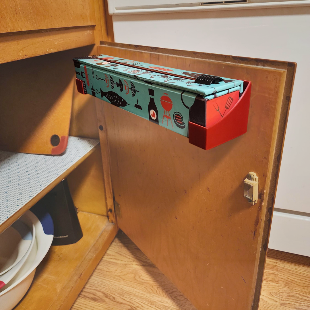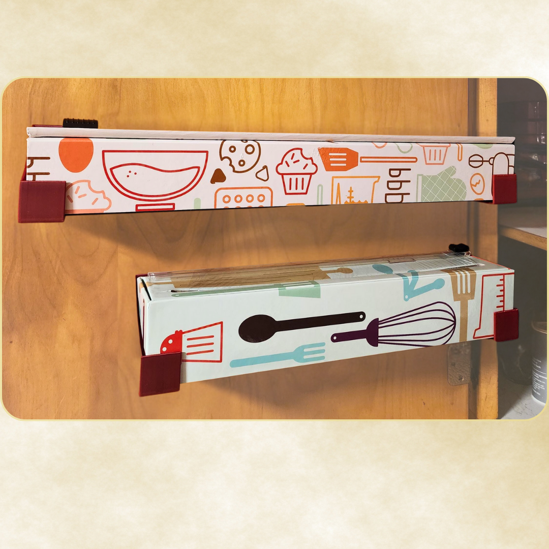 Elevate your kitchen organization with our eco-friendly foil and plastic wrap organizer. Made from recycled PLA by Prusa, this stylish and customizable organizer keeps your wraps tidy and accessible. Easy to install with screws or double-sided tape (both included). Available in various colors. Order now to enhance your kitchen space!